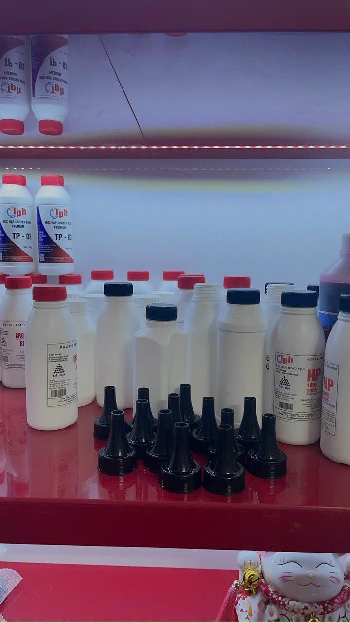 - Phễu kèm theo mực: Nhiều bộ mực đổ lại trên thị trường đã đi kèm sẵn phễu hoặc có đầu chai được thiết kế như một phễu nhỏ gọn.